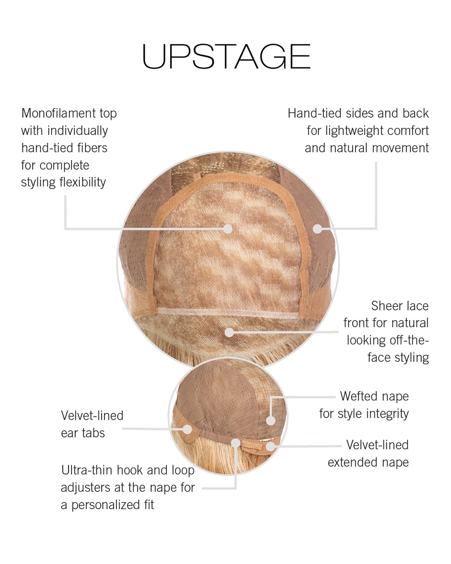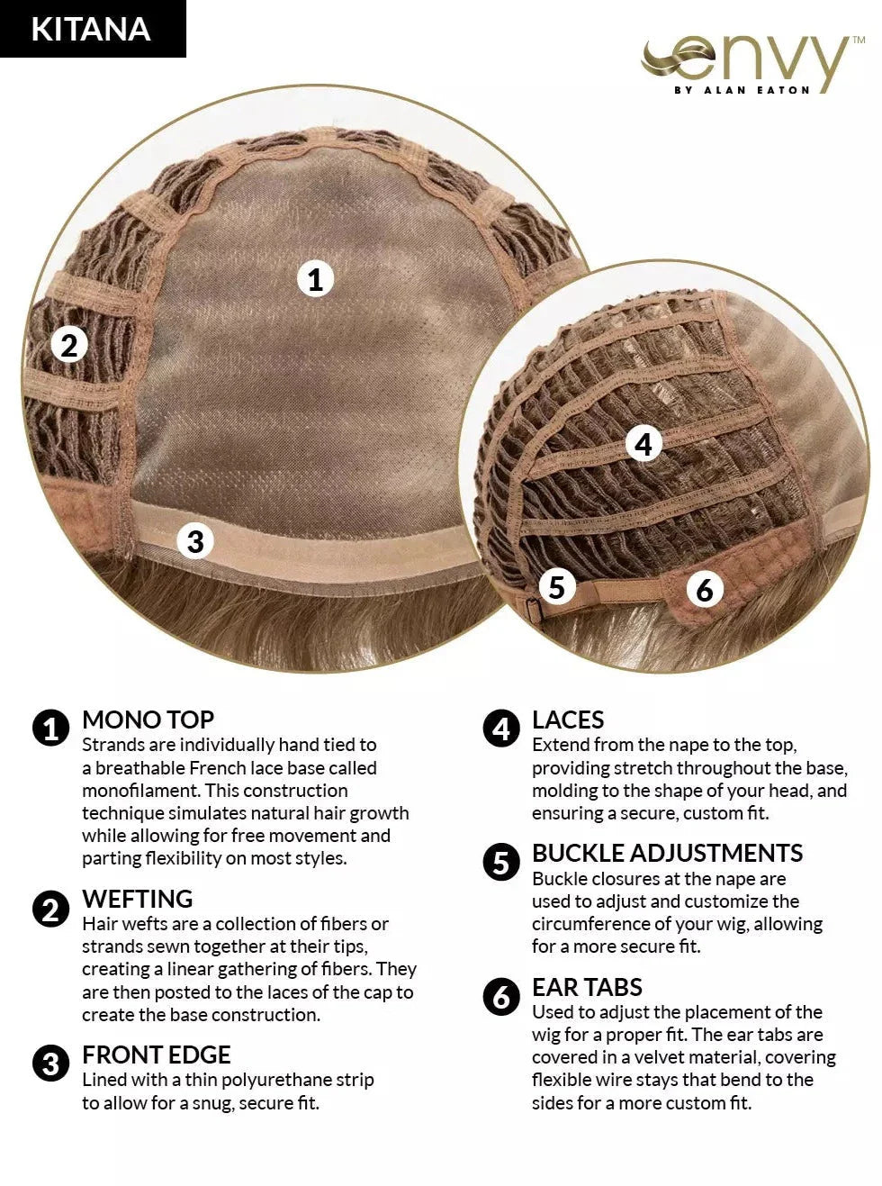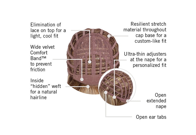 The cap construction is wefted, allowing for a cool and comfortable fit. There is a soft, velvet area at the nape when the velcro tabs are attached. If you want to tighten the wig or make it looser, then simply adjust these to fit your head