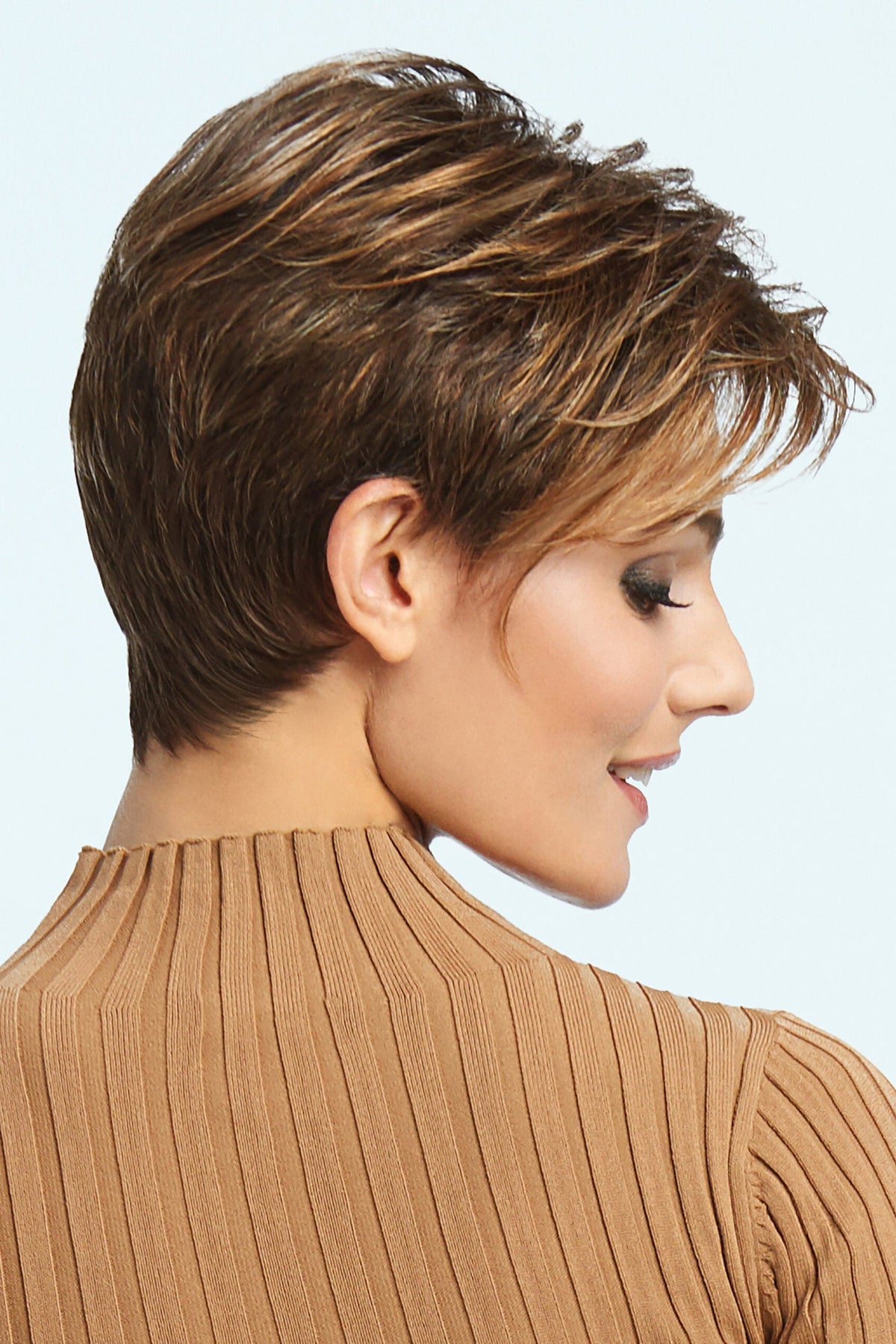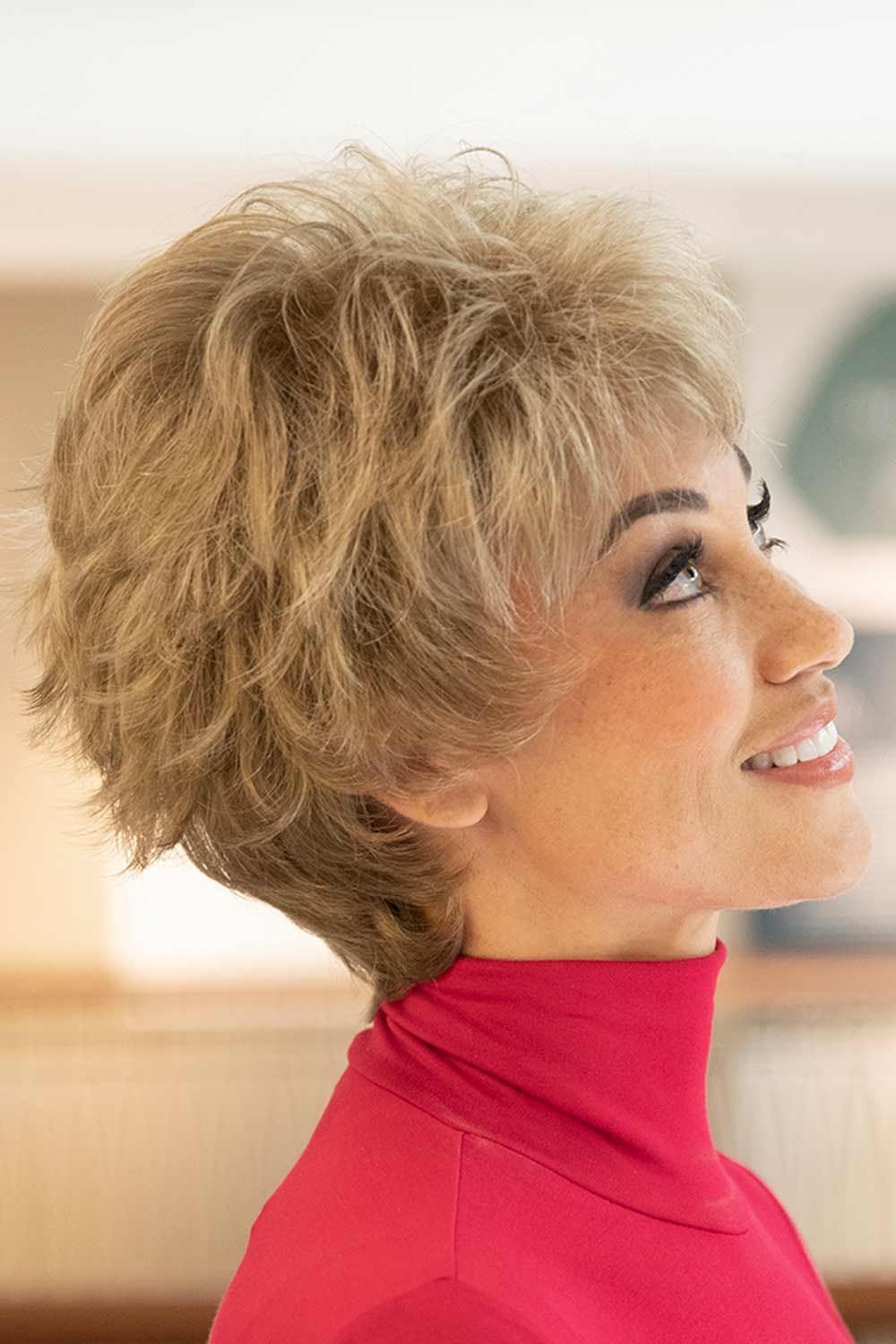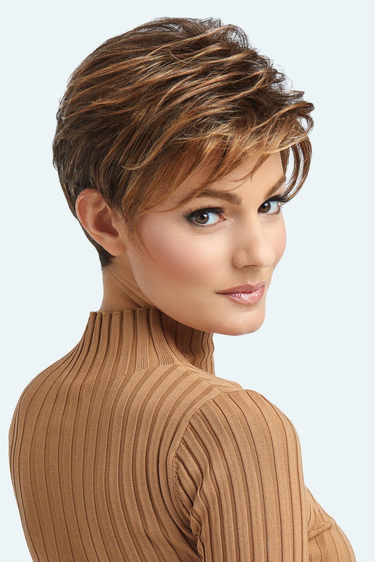 The Meg wig from Estetica is a gorgeous curly silhouette with a tapered neckline.